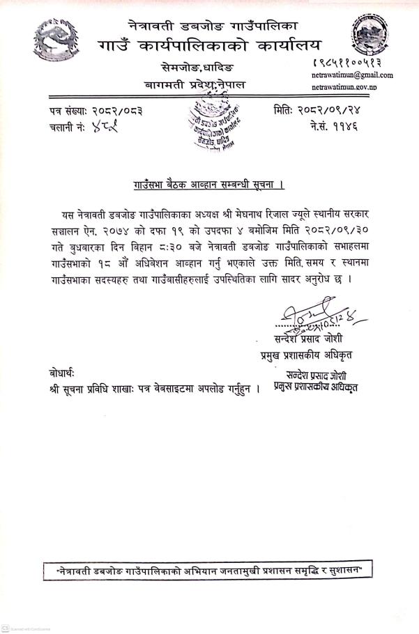 गाउँसभा बैठक आव्हान सम्बन्धी सूचना ।