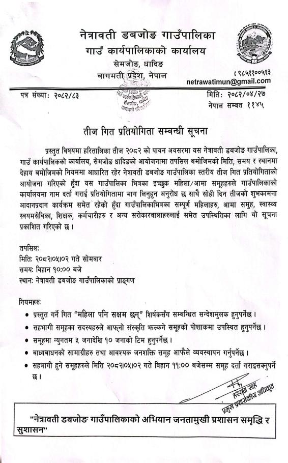 तीज गित प्रतियोगिता सम्बन्धी सूचना !!!