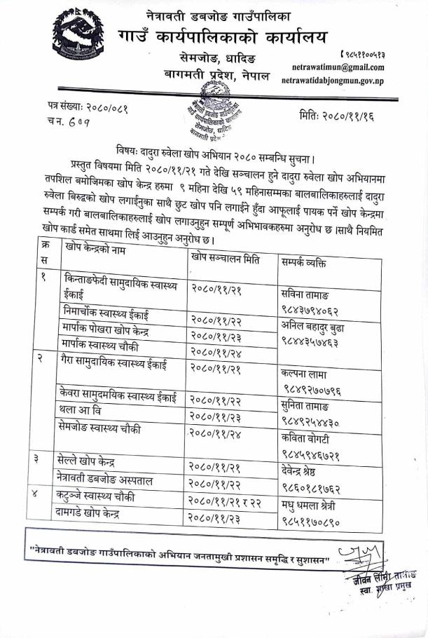 दादुरा रुबेला खोप अभियान सम्बन्धी सूचना !!!