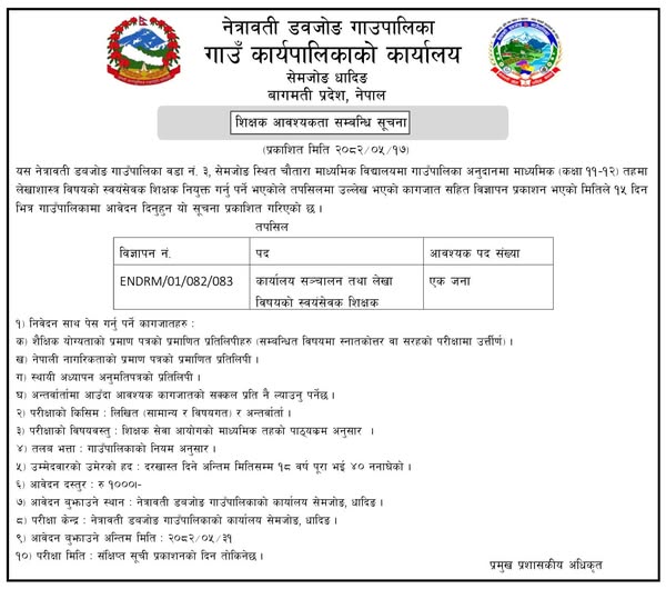 शिक्षक आवश्यकता सम्बन्धी सूचना !!!