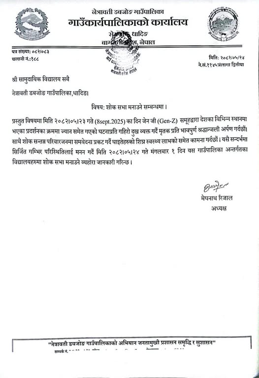 शोक सभा मनाउने सम्बन्धमा !!