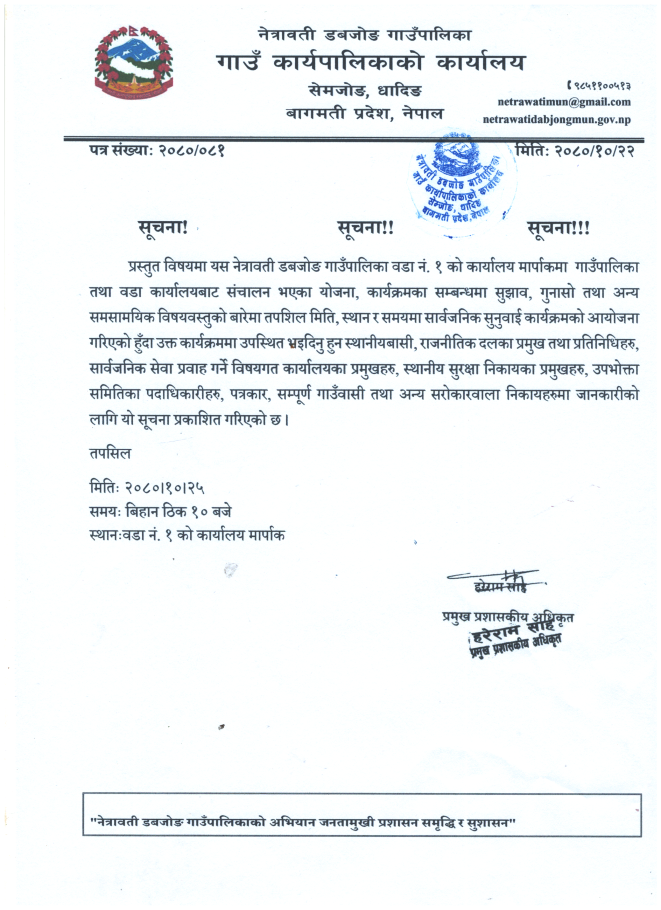 सार्वजनिक सुनुवाइ कार्यक्रम सम्बन्धी सूचना !!!