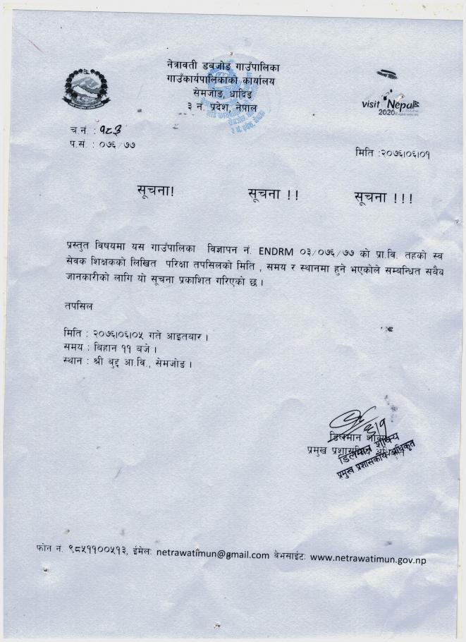 स्वयम् सेवक शिक्षकको लिखित परिक्षा हुने बारे सूचना !