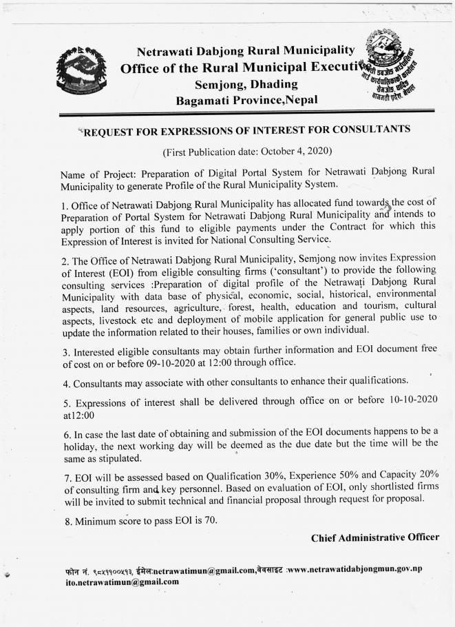 Request For Expression Of Interest For Consultants